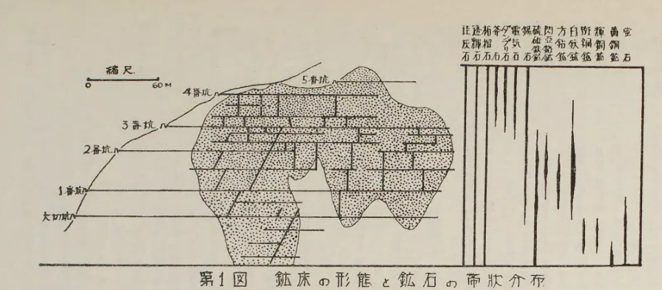 第二次世界大戦中には鉱山の経営が帝国鉱業開発会社などに渡りますが、戦後に中島鉱業が鉱業権者となり、銅と鉛の生産を行い、後に再び亜ヒ酸の生産を行いました。