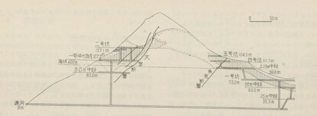 昭和36年の記録では三井金属鉱業株式会社が鉱業権者となっており、鉱区番号が、福井県採登録48号、71号、95号、119号、120号、121号と6つの鉱区が設定されています。