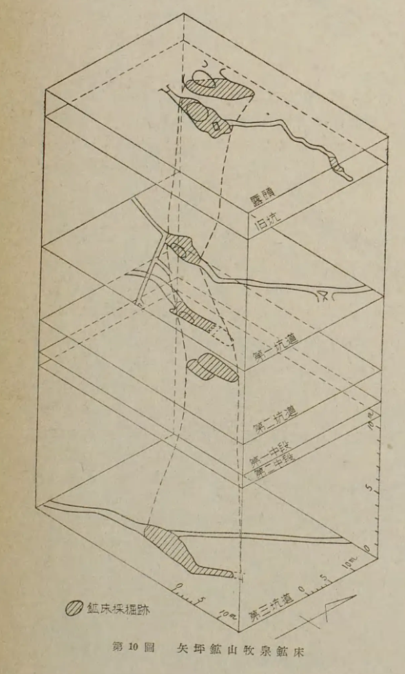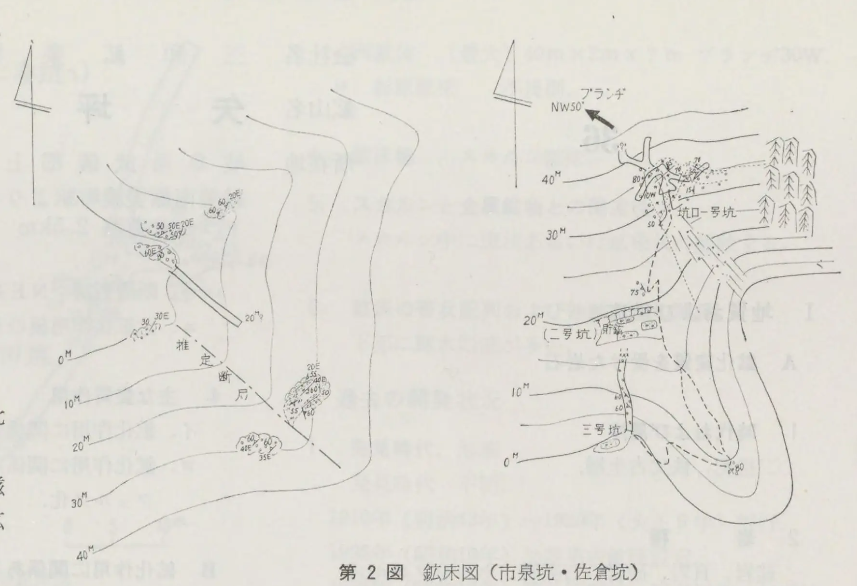露頭からの開発深度は牧泉鉱床で40m。佐倉鉱床で28m。