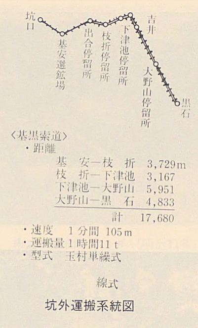 昭和18年(1943年)架空索道をさらに3.8km延長し、月産600tとなる。