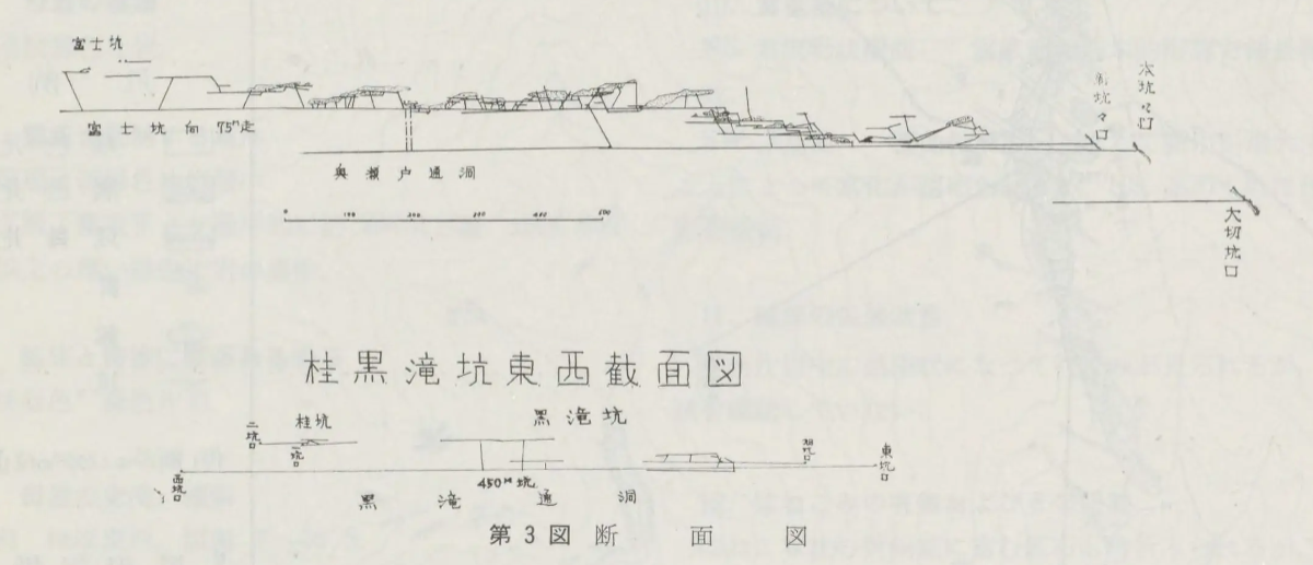 昭和36年までに旧坑は4,000m、450m坑は1,800mの坑道が開削され、1,500mの黒滝鉱床と上瀬戸通洞も作られていた。