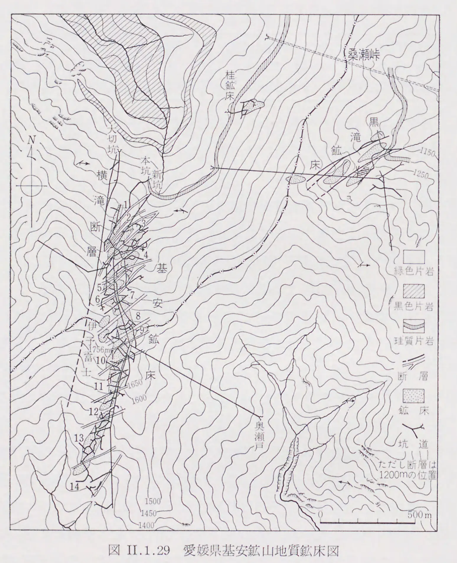 基安鉱山の鉱床は基安鉱床、黒滝鉱床、桂鉱床の3つが有りました。