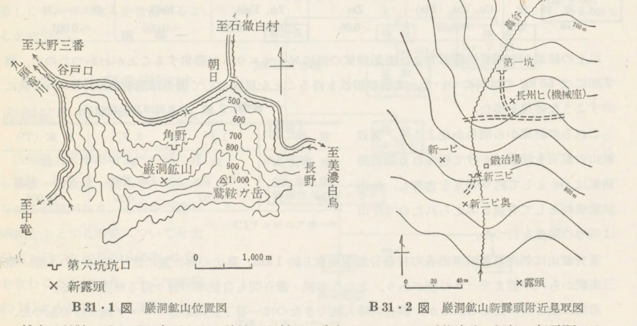 鉱床は鷲鞍ヶ岳の北斜面に位置しており、本𨫤、前𨫤、長州𨫤などの鉱脈が有りました。
